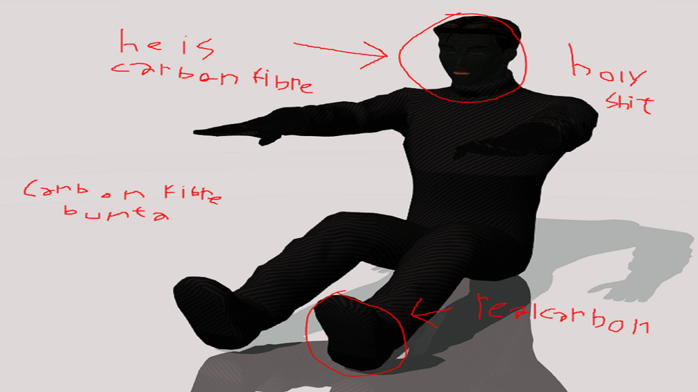 the year is 2077 and bunta has undergone full body conversion. he is now fully carbon fibre (fiber) excluding his facial features which are now painted fiberglass. he weighs only 18 kilograms and can do a triple downshift and 360 degree steering motion faster than you can say fuck. get him now. do it.